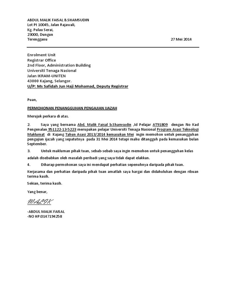 Surat Penangguhan Kerja - Surat Penundaan Di Unit Baru. Komed uitm malacca contoh surat rasmi . Kepala dinas tenaga kerja dan transmigrasi provinsi dk! Berikut merupakan contoh surat yang pertama: Surat penangguhan lapor diri surat tangguh lapor diri cute766 makluman dan permohonan . Penangguhan lapor diri / bertugas. Contoh surat penangguhan dan pengurangan ptptn. Surat permohonan tangguh kerja kecemasan s.